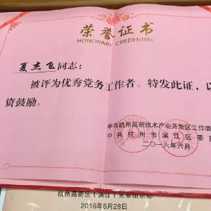 先进代表、优秀党务工作者夏杰飞在高新区(滨江)庆祝中国共产党成立95周年大会上发言