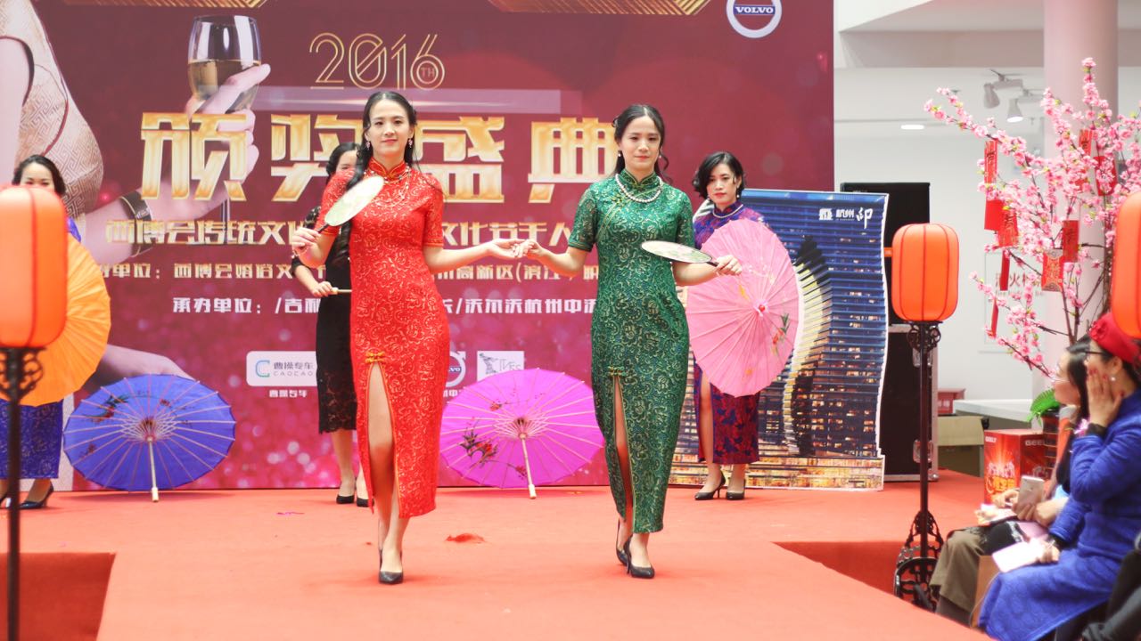 由中国(杭州)西湖博览会国际婚俗文化节组委会主办的杭州市民休闲节“国学、茶文化、旗袍秀”体验活动暨2016西博会传统文化节&婚俗文化节千人旗袍秀启动仪式,于2016年10月14日在国家重点保护文物单位——富义仓西博会婚俗文化节国学基地隆重举办。11月12日在龙湖春江悦茗举办了首场旗袍秀爱好者化妆、培训以及旗袍形象照拍摄活动。来自各大企事业单位,医院,学校,个人爱好者等接近200人参加了此次培训。一早,花都学校20余名学生便带着专业的化妆工具来到现场,为旗袍秀爱好者做整体造型装饰。11月26日决赛暨颁奖典礼在浙江吉利控股集团隆重举行,花都化妆2班一行负责了全场的化妆整体造型!