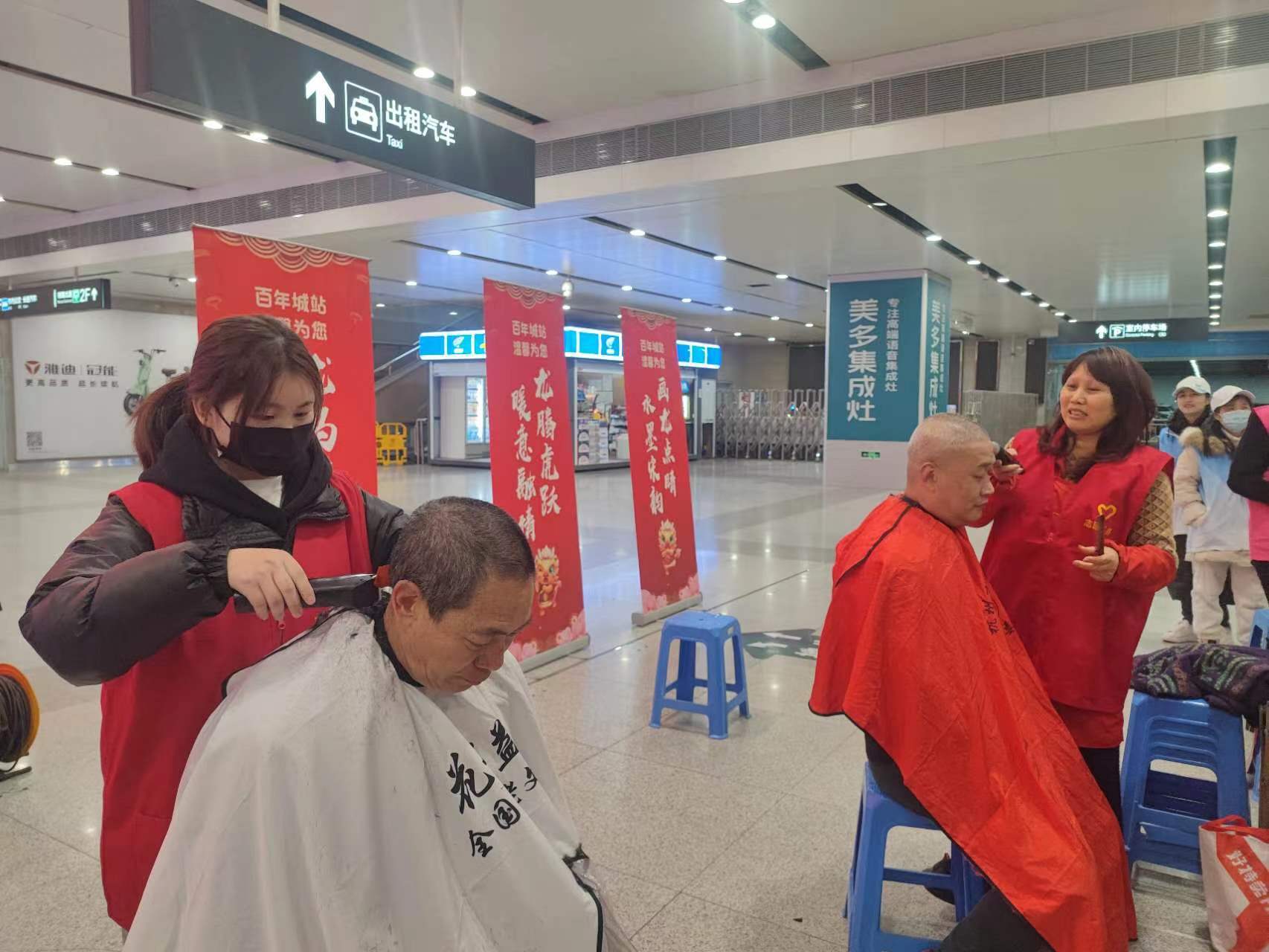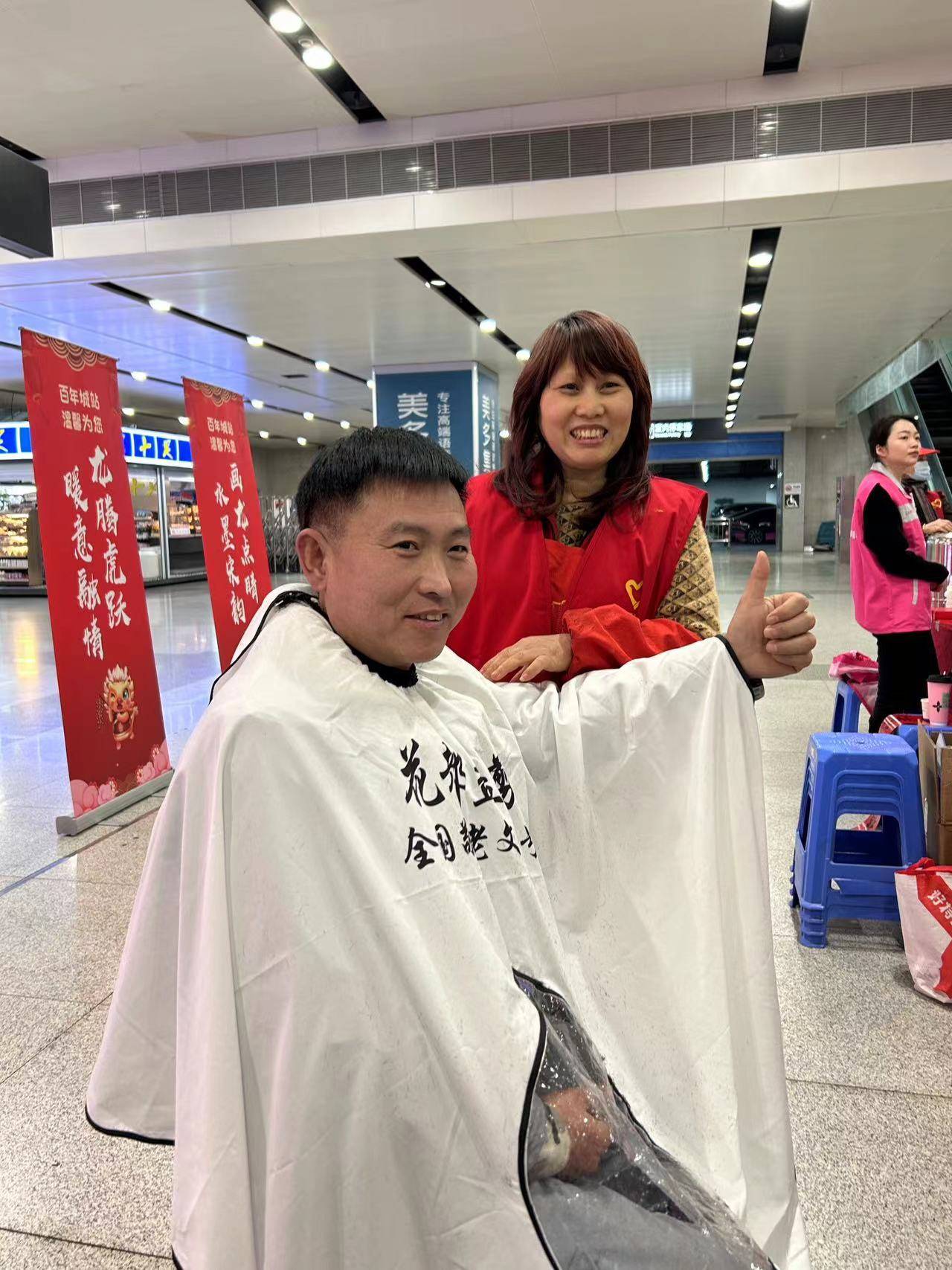 益剪免费理发为南来北往旅客理发