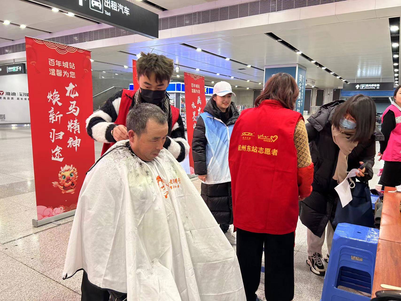 1月25日下午,杭州城站火车站南来北往的旅客正在这里踏上回家的旅途。花都益剪志愿者参加了在城站广场层举办“暖意融情 温馨为您”主题服务活动,为旅客送上了理发服务,让他们把杭州的温暖带上旅途,让新的一年从头开始。随着本次活动的结束,2023年花都益剪全年度工作也暂时告一段落。一年来,花都益剪坚持为滨江区老年人群体免费理发,并多次组织上门为江汉社区、六合社区、东信社区等行动不便老人、残疾人等服务,受到了一致好评。全年累计服务老年人近万人次,涌现出了一大批优秀青年志愿者。2024年花都益剪免费理发将在3月3日起继续为您服务。